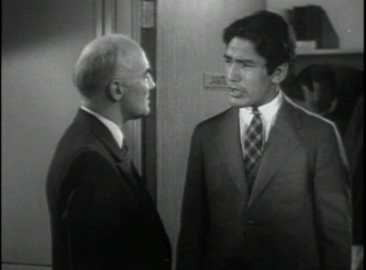 Elsewhere, Kraft parleys with Cheyenne chief Dark Eagle in his trading post office. Kraft encourages Dark Eagle to make war against the settlers filling the territory, the better for Kraft to control it, but the Cheyenne have no quarrel with their white brothers and Dark Eagle refuses. (A memorable part of Kraft’s shtick is the knife which he toys with while in conversation; if Kraft hears something he doesn’t like, he drops the knife, seemingly by accident, a signal for his hidden confederate to kill whomever Kraft is talking with.) For his obstinance, the Cheyenne chief is murdered and his body is left in the path of the wagon train so that his tribe will blame the settlers. Dark Eagle’s son, Nakomas, at first takes the bait, but Carson suspects foul play and convinces the young chief to join forces so they can uncover the truth.