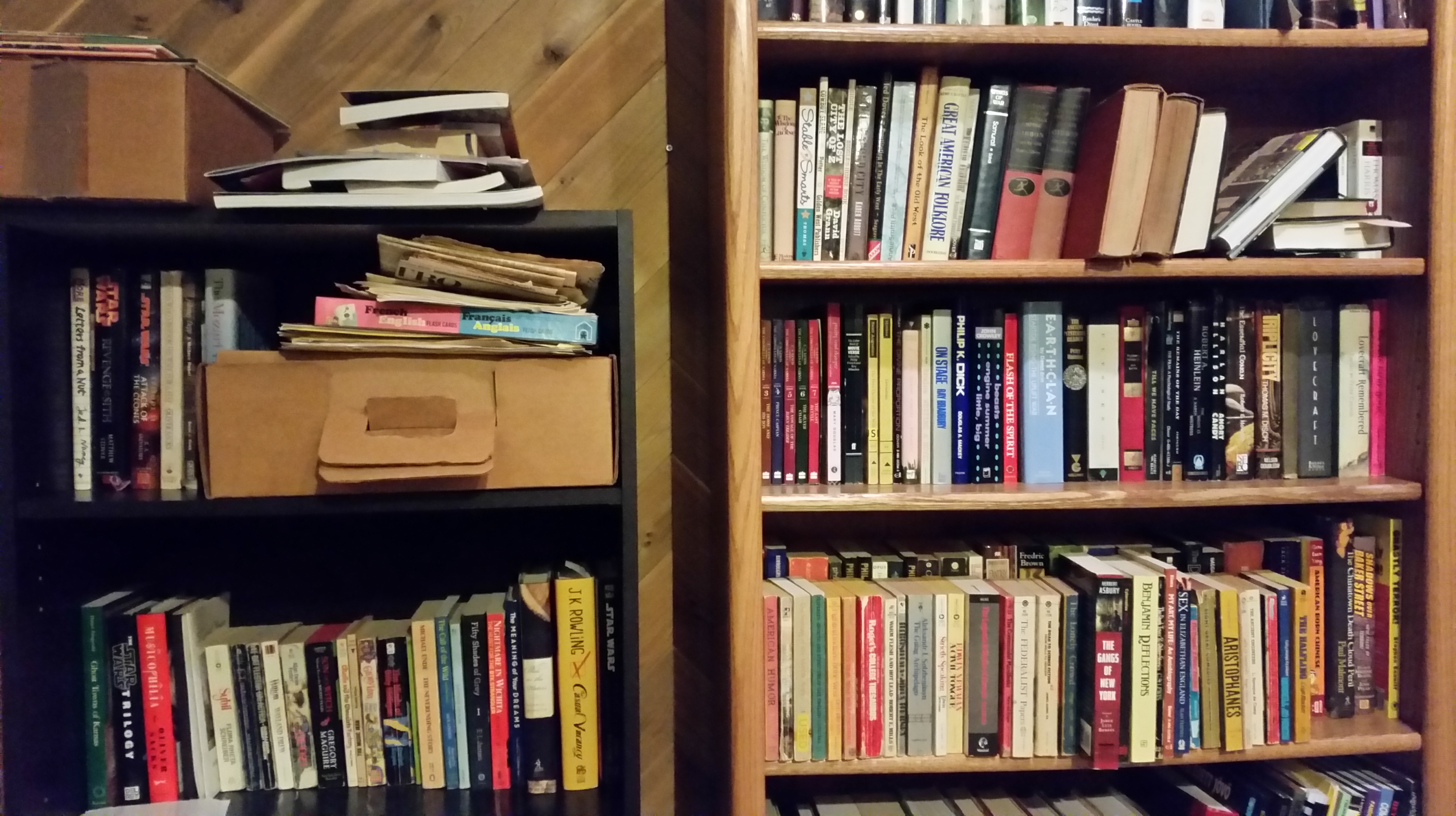 In one house I lived in, I had a bookshelf in the living room full of classics, some of which I had read and others I hoped to get to, lumped together by the single commonality of their supposed importance. In the guest bedroom, however, were the books I really read, the Stephen King and Philip K. Dick, the reprints from the pulp era and the books on UFOs and unexplained mysteries. The house I’m in now I’ve been in a little more than a year, and while the display of my books is a little less showy and two-faced, it’s still the result of practical compromises, so while much of my library looks like this: