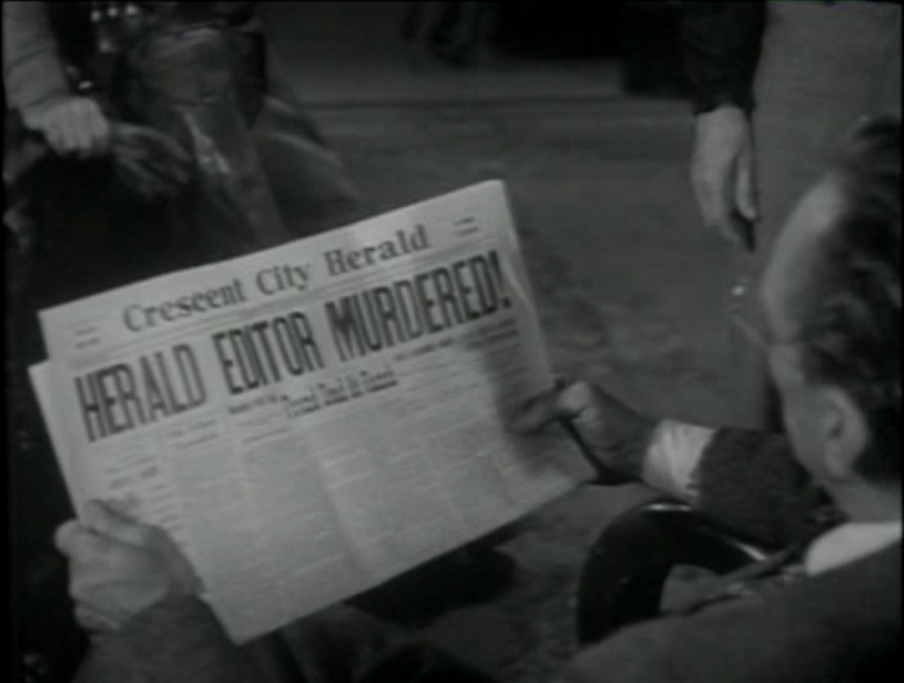 Throughout, Barbara uses the newspaper to pass information along and provide handy visual summaries for the audience: HERALD EDITOR MURDERED; $10,000 REWARD; BIG GOLD STRIKE AT HARPER’S CREEK, etc. At the same time, Hammond secretly uses his position as a businessman and member of the citizens’ committee to shape public opinion and stymie attempts to curb the outlaws. It’s a surprisingly urban approach to the Western, with gangsters using six-shooters instead of tommy guns and getting away on horseback instead of in black sedans.