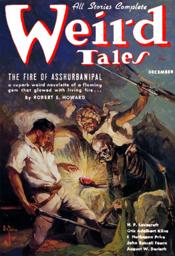 The title refers to one of Howard’s own contributions to the Mythos, the “Black Book” Unaussprechlichen Kulten by Friedrich Von Junzt, the author’s answer to Lovecraft’s forbidden tome the Necronomicon. Embroidering on his friend’s growing set of references, Howard added Von Junzt and his book, along with such characters as the “mad poet” Justin Geoffrey and the Great Old One Gol-Goroth, to the Mythos. (Howard’s many pre-historic speculations on Atlantis, Valusia, and other aspects of Conan’s “Hyborian Age” would also be swept into the Mythos by Lovecraft and others in a pattern of mutual borrowing, so one could as easily refer to a “Weird Tales Mythos” as use the more familiar term “Cthulhu Mythos,” which of course was a label added only later by Lovecraft’s literary executor August Derleth.)