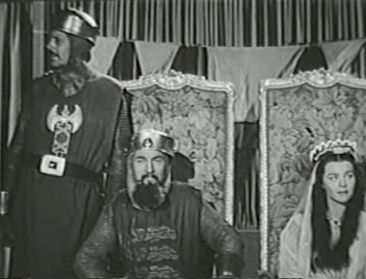 As Galahad, George Reeves (who would go on to play Superman on TV) makes a convincing hero, eager and brave, but at 35 he is more boyish (at one point a discouraged Bors calls him a puppy, “barking at nothing and chasing his own tail”) than boy (apparently a common pitfall in serial casting). Charles King plays Bors as an over-the-hill Falstaff, accustomed to big meals and the wenches who serve them, but he also becomes Galahad’s most loyal companion and, like all the knights of Camelot, will do what must be done to combat evil.