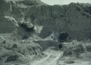 As Kamandi Challenge no. 5 begins, Kamandi and Vila are being chased by the Kanga Rat Murder Society, by whom they were captured at the end of the last issue. Self-proclaimed guardians of the “Wondrous Western Wall,” the Kanga Rats have given our heroes their choice of vehicle and weapons to defend themselves–they’re sportsmen, not monsters. Kamandi, in the driver’s seat, switches places with Vila so that he can shoot back at the hunters while she drives, and Vila makes the calculation that she can save them by driving off a convenient cliff and landing in open water (sure, last issue they were in “the heart of the scorched Outback,” and now they’re on the shore of the ocean, but whatever). Despite Kamandi’s protests, Vila does just that, growing and extending her plant body to create a protective shell around Kamandi, Groot-like, and then transforming herself into a raft (previous stories showed Vila regenerating herself, but this is the first indicator that she has this much control over her form; still, it’s inventive and exciting, so I’m willing to roll with it). After days adrift at sea, Vila enters a dormant state, assuring Kamandi that she will awaken and regenerate anew once she is in contact with soil and fresh water.