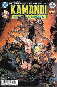 “What have you done to Kamandi?!” Mack demands as Kamandi Challenge number 6 gets underway. The good doctor explains what is happening, finishing with the ominous promise that “The only thing keeping your friend alive . . . is me.” So to motivate Vokolo, Mack shoots him in the gut, forcing him to use the “bio-printer” to save himself and Kamandi. Well, actually, it takes seven hours to print the regenerative “gene therapy” that they eventually find in the computer’s records, but Vokolo estimates that he has only three hours to live after being gut-shot, so in the end he gets what was coming to him, and only Kamandi lasts long enough to benefit from the gene therapy.