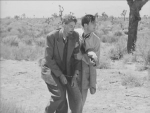 Where 1937’s Dick Tracy has much in common with other serials in its masked mastermind and brainwashed brother, and Dick Tracy Returns is tonally similar to Chester Gould’s comic strip, Dick Tracy’s G-Men seems to draw a great deal of inspiration from the pulp magazines that were contemporary to it. For one thing, there is a great deal of well-executed action, including excellent fight choreography and stuntwork. More importantly, the exoticism of a secret drug mixed into newsprint is just one of many examples of bizarre gimmicks that could be torn from a Ripley’s Believe it or Not! strip, or from the adventures of the Shadow or one of the many knock-offs of Sax Rohmer’s Fu Manchu (or, looking ahead a few decades, the kind of thing Ian Fleming’s James Bond might run into). In another chapter, Zarnoff traps Tracy and his partner Steve Lockwood in a barred room, electrified by a sparking dynamo, and the settings in this serial are even more wide-ranging and colorful than usual, from a lighthouse to a deserted Old West ghost town. Like many serial villains, Zarnoff has hideouts and connections in all manner of places: an abandoned cannery, a fur store, a diving bell hidden beneath a dam, and several houses, cabins, and hotel rooms. Even the conclusion, with Tracy and Zarnoff stranded alone together in the desert, is different in character from the typical serial confrontation, like something out of a men’s adventure magazine and featuring a moralistic O. Henry twist (although it is similar to the ending of Dick Tracy Returns in that it gets the hero and villain alone together by means of an attempted airplane escape).