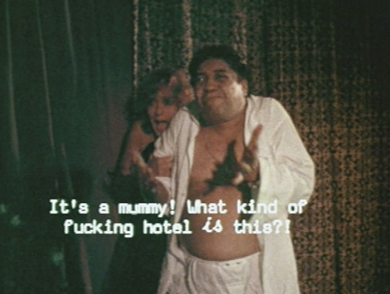 Actual Weirdest movie: In addition to the Saturday the 14th movies, there was quite a bit of weirdness in Videodrome and the similarly ooky Society; The Crimson Cult was frankly not weird enough for a film supposedly based on H. P. Lovecraft’s “Dreams in the Witch-House,” and its Scooby-Doo-like ending bummed me out. I have in the past made a distinction between movies that are weird in themselves and movies that appear to have been made by weirdoes: The Secret of the Mummy, by Brazilian provocateur Ivan Cardoso, qualifies as both. Jumping between black and white and color and incorporating stock travelogue and newsreel footage, as well as impressionistic montages and rapid cuts between isolated details, The Secret of the Mummy tells the story of an obsessed scientist who recovers an Egyptian mummy in order to test out his elixir of life and revive it. The fact that the young Pharaoh was a sex-crazed serial killer in life doesn’t faze the scientist, and once the mummy is up and about he resumes his favorite pastime. It feels like a collision of a Universal monster movie (as well as the sexed-up mummy, there are shades of Frankenstein, including a hunchbacked lab assistant) and a Carry On sex comedy. The Secret of the Mummy is unapologetically kinky, but extremely stylish, and Cardoso reminds me (based on this single film–I have three more to watch) of a straight, Brazilian John Waters.
