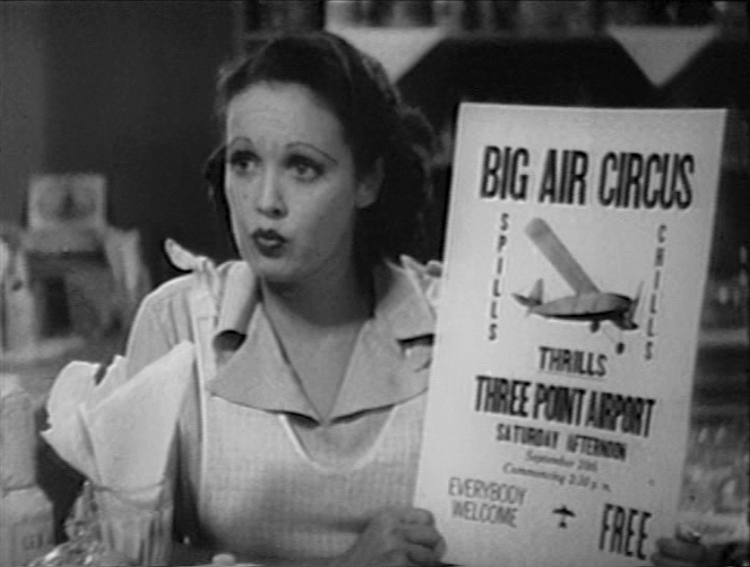 Despite the short time between the two serials’ production, Great Air Mystery recasts most of the main characters, with Clark Williams taking the title role in place of the first serial’s Maurice Murphy; Jean Rogers, the future Dale Arden, now plays Betty Lou, replacing Patricia Farr. (Such recasting occasionally happens today, but it was even more common in the studio era when film production was more akin to an assembly line.) Fittingly, Noah Beery, Jr. returns to play Skeeter, the most distinctive character among them, but even here his shtick is changed: as a comic relief sidekick, Skeeter usually has a running gag: in the first Tailspin Tommy serial, he had a tendency to make a proclamation or observation and proclaim it an “unwritten law.” In the 1939 feature Sky Patrol, Skeeter was given to malapropisms, mangling or misusing polysyllabic words. In Great Air Mystery, however, Skeeter’s comedy isn’t that broad, mostly limited to attempts at card tricks (in one sequence he attempts to use one to distract Manuel’s men after being captured) and his nervous reaction to Inez Casmetto’s obvious come-ons (not an unusual trait for a comic sidekick at the time).