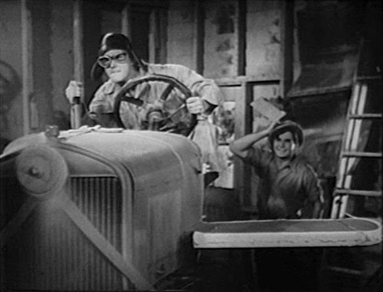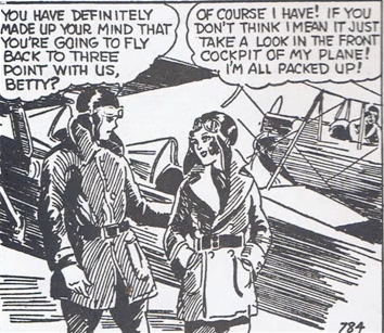 Of course, Betty Lou isn’t content to sit back and let the boys have all the adventure: recall that in the first serial, it was she who first had her pilot’s license and was Tommy’s introduction to the world of flying. In Great Air Mystery, despite Tommy and Skeeter’s efforts to keep her away from danger, she several times either stows away (hiding in a truly tiny-looking compartment in Tommy’s plane!) or flies off on her own, alone or with Inez (Delphine Drew). (Needless to say, this sometimes does put her in danger, but that just puts her on the same footing as everybody else in this serial.) Betty Lou’s attitude is summed up in Chapter Seven (“The Crash in the Clouds”) when she arrives at Don Casmetto’s oilfield in her own plane with Inez after being told to stay away. Skeeter tells her, “Hey, don’t you know this is men’s work?”, to which she replies, “Where’s the sign?” When Skeeter asks what sign, she spells it out for him: “Men. At. Work.” (No, it’s not exactly Preston Sturges.)