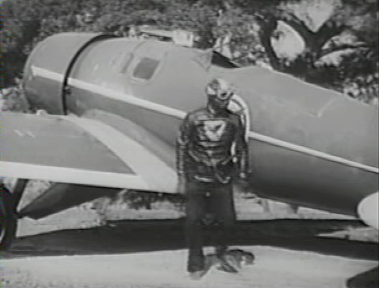 However, El Condor is not the only masked flyer in the serial, nor the only character who has secrets. One of Don Casmetto’s friends, Enrico Garcia (Paul Ellis), is quickly shown to be a traitor, feeding damaging information to Manuel and Raymore, as well as taking to the air himself as “Double X,” retaining his anonymity with an aviator cap and goggles marked by twin Xs, a literal “double cross.” Garcia is able to play both sides for quite a while, and is even able to convince Don Casmetto for a time that he is the mysterious “El Condor.”