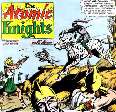 When I first read the Atomic Knights stories (about fifteen years ago), they struck me as more than a little silly: in addition to the conceit of medieval armor protecting against radiation, the stories were burdened with outdated gender roles (the “littlest knight,” Marene Herald, mostly stays out of the way, awaiting the day that team leader Gardner Grayle will propose to her) and too many convenient “scientific” solutions to problems. Although the war is said to have occurred in October, 1986, the Atomic Knights’ roots in the early 1960s remain obvious.