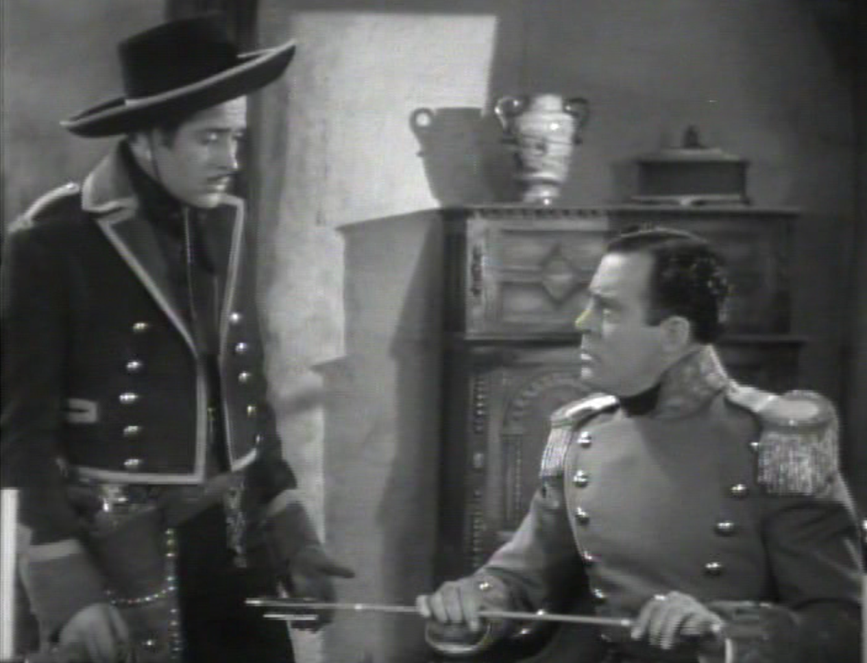 After the main conflict has been resolved, and all the villains get their comeuppance (even the Painted Stallion gets to face off personally against Zamorro’s black steed), a bunch of loose ends are tied up in literally the last two minutes. (Spoilers follow if you actually plan on watching this, as if you couldn’t guess these developments.) As the new governor signs the trade agreement, he casually notes a story told of a white child raised by the Comanche, the sole survivor of a massacred settlement, and worshiped as a “Goddess of Peace” by the Comanche because of her blonde hair. I was beginning to think the filmmakers were never going to get around to explaining this, but it’s exactly what it seems, a variation on the “White Goddess” trope as seen in She and Green Mansions, the romantic “best of both worlds” fantasy seen in the works of Edgar Rice Burroughs, and a far cry from the complexities of something like The Searchers.