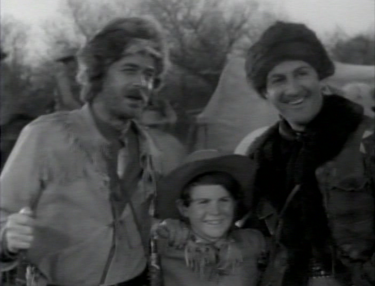 That’s not all: young Kit is at first left in Independence to help the storekeeper run things in Jamison’s absence, but he stows away again, hiding in one of the covered wagons. Recognizing an ambition that will not be denied, Stuart accepts Kit as part of the trading expedition and entrusts him to legendary frontiersmen Jim Bowie and Davy Crockett, who also just happen to be riding with the wagon train. Between these three role models, young Kit begins learning the ropes of scouting and wilderness survival.