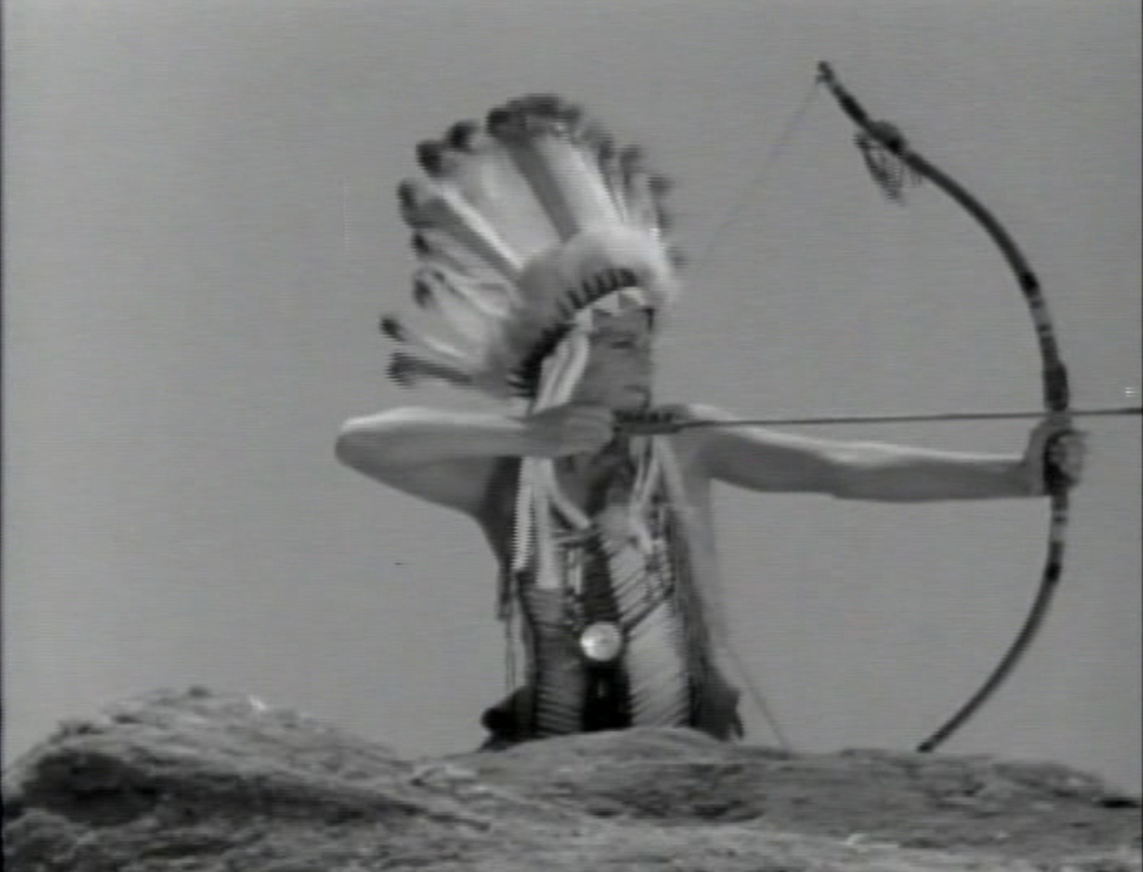 The titular Painted Stallion belongs to a mysterious Indian rider who appears at opportune times to warn the wagon drivers of trouble or protect them. Although Stuart and the other characters don’t find out for a few chapters, the Rider is a beautiful blonde woman (Julia Thayer) wearing a feathered chief’s headdress; appearing on the top of a ridge or other cinematic vantage point, she fires “whistling arrows” (the sound effect is like a long glissando on a violin) to warn the Americans, send messages, or (sometimes) kill hostile Indians or Mexicans. Speaking only a few words of English, she is shown having the power to command animals (her own horse and a panther, which she sets to guard Stuart after he has been knocked out at one point), and she knows the land intimately, including secret entrances to Dupray’s mountain hideout. Who is she? Why does she ride alone, and why do even the local Indians defer to her? Other than Stuart’s brief expression of surprise when he first meets her, no one has much time for that question until it’s resolved at the very end of the serial.