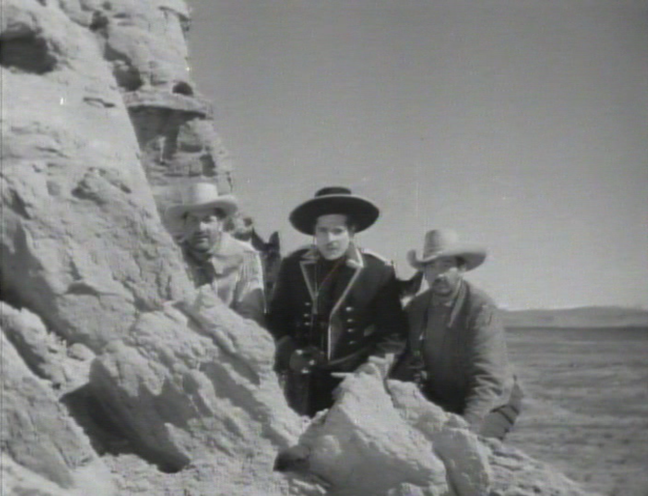 Even after the wagon train makes it safely to Santa Fe and Dupray’s plot is discovered, there’s trouble. The new governor won’t sign the trade agreement until the Americans can catch Dupray and the bandits who have been under his leadership all along, and with Dupray having fled Santa Fe, the second half of the serial turns into a series of sieges of both the Presidio in Santa Fe and the gang’s hideout. Any historical animosity between Mexico and the United States is wiped away by their mutual foe, the dastardly Spaniard Dupray. “We’re holding them off successfully, thanks to you Americans!” says the new governor during a fire fight. At one point, Jim Bowie is captured. When asked where he is after the fight, Crockett says, “I don’t know, but those bandits had a prisoner that sure looked like him.”
