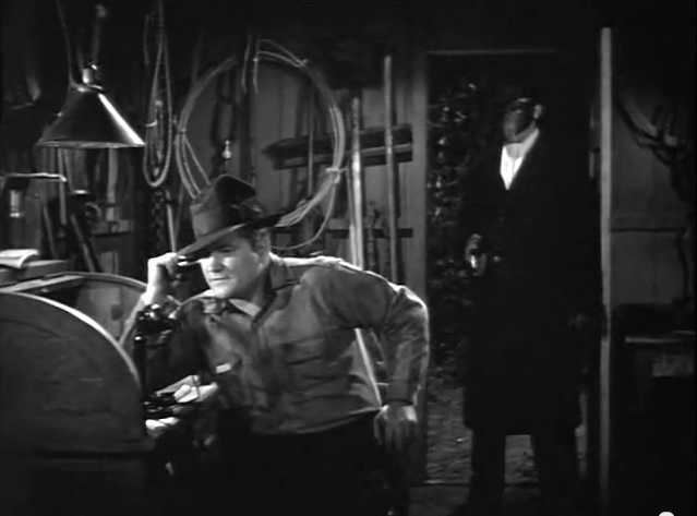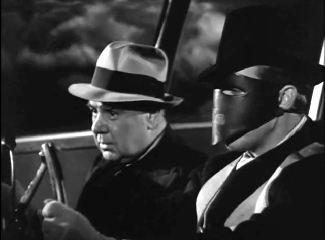 Although soft-spoken, every line he speaks sounds like it was written for Edward G. Robinson, see? He just figures Reid needs to be leaned on a little, see? And the squealer who fed the Sentinel the information about Foranti is dead now, see? You get the picture. Foranti isn’t exactly comic relief (that’s what we have Axford and Lowery for), but as a parody of the popular gangster, he veers farther into camp than the rest of the film; he’d be more at home in Columbia’s Batman serials. This chapter also makes good use of the conceit that the Green Hornet poses as a criminal to get information, and here he gets Foranti to turn on his associate Breedon by playing to his paranoid fear that Breedon is betraying him. On top of all that, Foranti has the distinction of being gassed twice in the same chapter by the Hornet, the only villain so treated.
